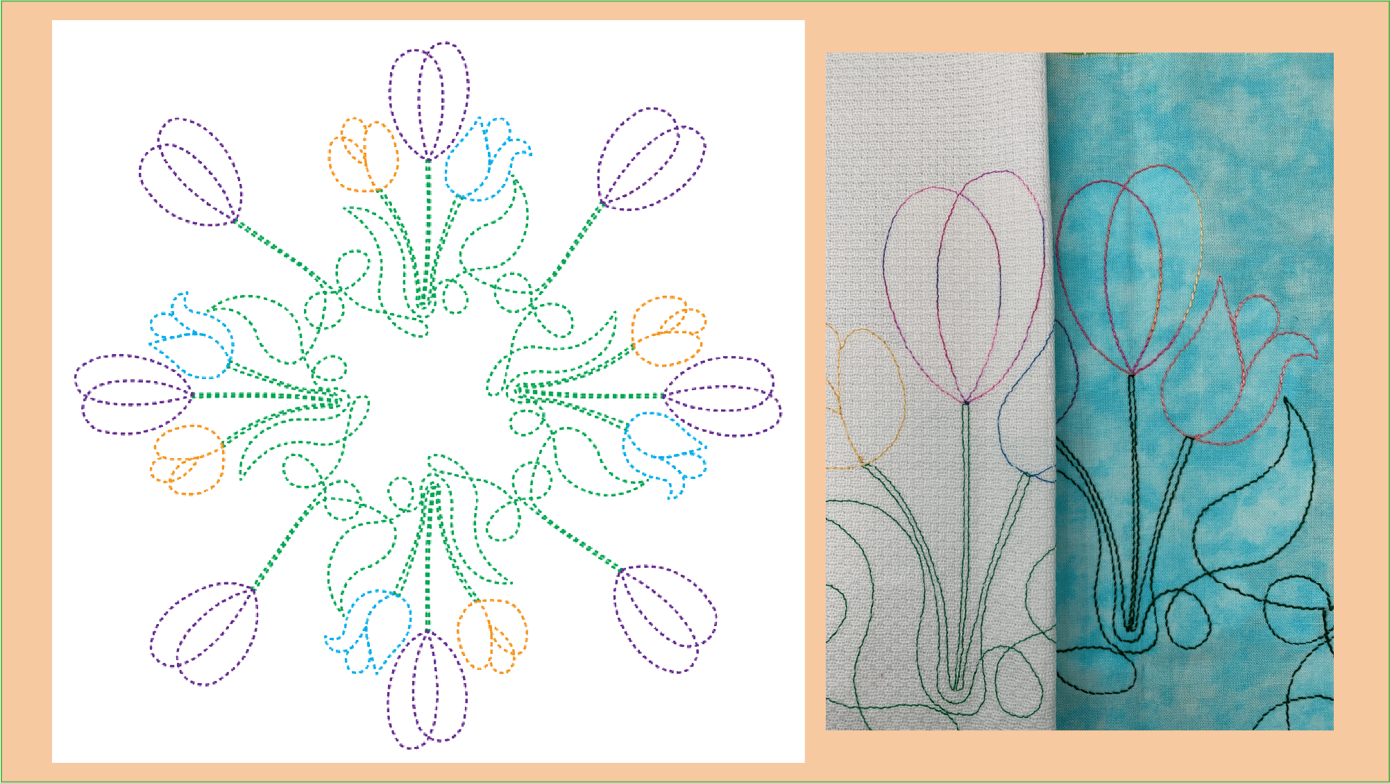 It’s May, which means it’s Flower Month! This year, it’s Flower Borders. The single-run line Flower Border designs stitch quickly and easily chain together to create Borders, squares, and rectangles.