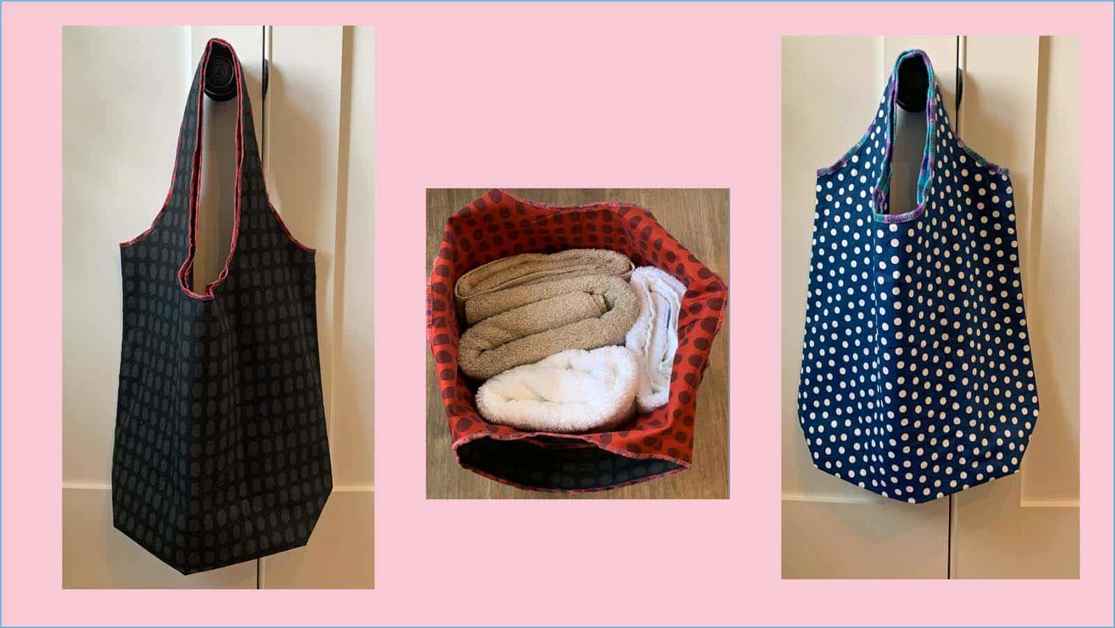 This month, we will be making a quick and easy Big Bag. The Bag has a full Lining with two handle options, an optional Flap, and a Decorative Edge Finish. I’ve designed the Bag to be a lightweight canvas or duck cloth for the outside fabric and quilt-weight cotton or blend for the lining. The Bag folds or rolls into a compact size and secures with a Flap or Twisted Handles. This Bag is an excellent replacement for paper Shopping bags or anytime you need a nice Big Bag!