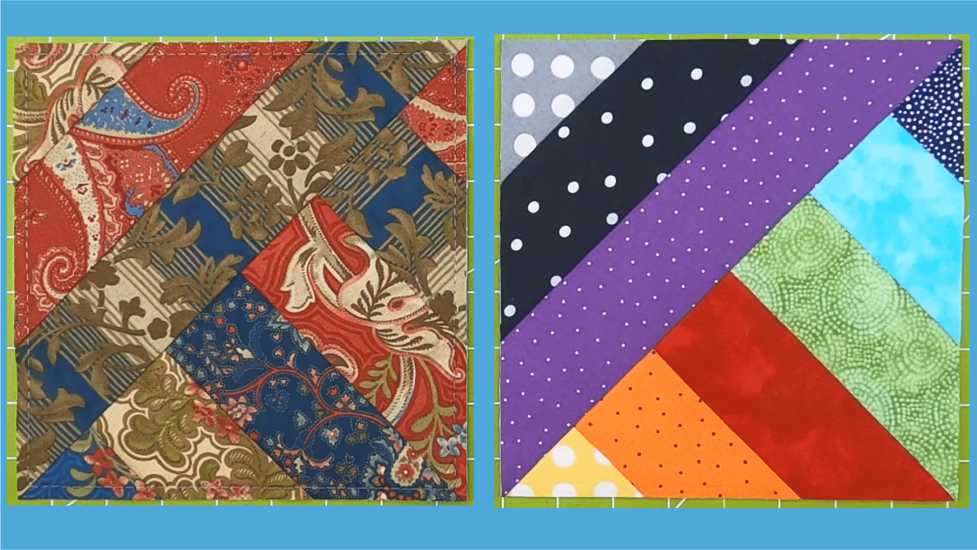 This month, it’s a fresh take on the standard Half Square Triangle (HST). WE’ll use the Stitch and Flip process to create the Blacks. I designed the Strip HST Block to work with Jelly Roll Strips, and I thought it would be a perfect way to use up odd lengths and leftovers to make a great scrappy Block.